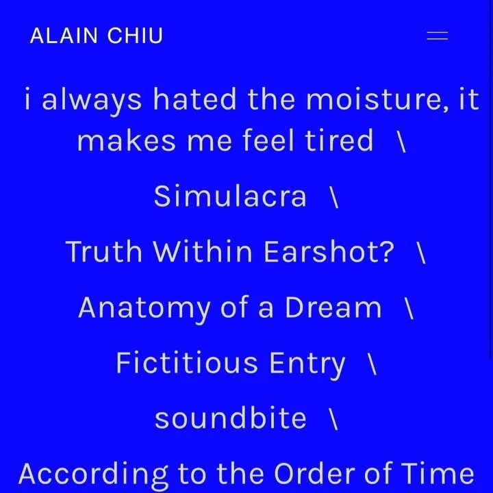 Composer and sound artist Alain Chiu's body-of-works sits firmly at the juncture of contemporary music, sound art, and multimedia art. It ranges from traditional music, sound installations, experimental musical theatre, to virtual reality videos and video installations. Chiu's works are an assemblage of influences and practices giving them a unique sensitivity and inquisitiveness. As an artist, Chiu aims to curate and assemble sonic, musical, and physical materials to create tools revealing the deeper substrate of contemporary culture and the human condition.