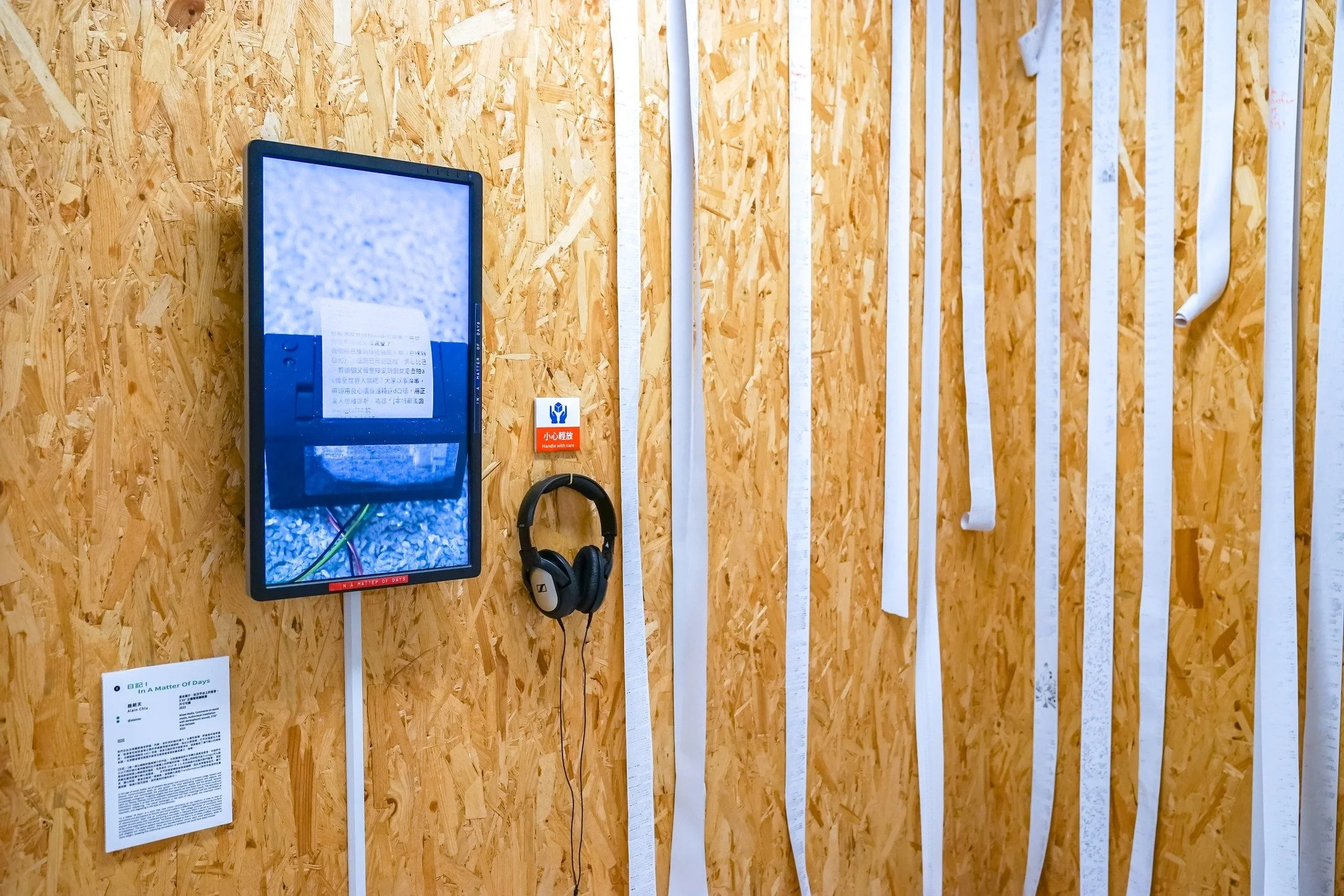 In A Matter Of Days 是一個以網絡評論為媒介的作品。 它試圖通過將文字轉化為其他感 觀,令我們可以以不同的眼光看待論壇和社交媒體上的評論和討論。 在牆上的拼貼作品 (Collage) 可以說是我那段時間上網經歷的縮影,包含我在 2023 年 2-3 月的兩週內收集 的熱門論壇。 這些詞彙在藝術裝置中轉化為語音: 文字到語音轉換後經過編輯,因此有時 聲音低沉、聽不見、難以辨認,最後交集成一首樂曲。 這個轉化過程 (Transformation) 突然令每個字的意義突顯,像是打破花瓶後,我們看到的鋒利碎片。